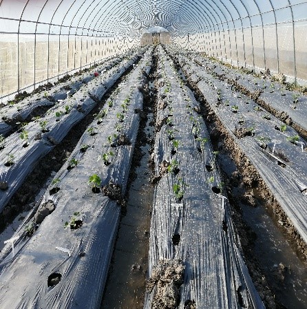 园艺系相关教师在11月下旬,根据苗情及长势分别将甜瓜定植于4个大棚中,共设3个处理,3个重复,目前长势良好,大部分品种处于3、4叶一心,恰逢甜瓜的标准定植适期。