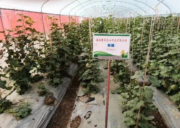 12月9号、主办方广陵公司安排与会人员参观考察黄流抱孔洋基地的国家(乐东)南繁育种核心区,区内分别展示了安徽百恩农种业有限公司、山东旭日农业科技有限公司、江西省赣新种子有限公司、江西华农种业有限公司、东方乡薯现代生态农业有限公司、海南耀农农业开发有限公司等单位及企业的龙头产品,包括西瓜、甜糯玉米、四季豆、红薯、哈密瓜等作物。期间公司的相关人员也分别对展区内的作物种植情况、病虫害防治情况、育种相关情况进行了介绍。