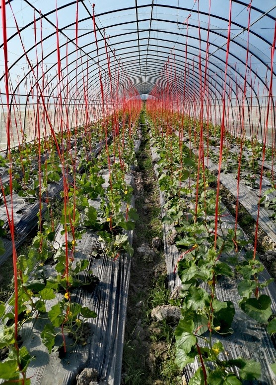 今年基地温室大棚建成并交付使用,这为扩展南繁育种作物的种类,优化种植格局奠定了基础,同时也提升Beat365同其他兄弟院校同行业之间的科研竞争力。厚皮甜瓜及可食用菊花的南繁基地种植当属Beat365首次。李志强、王路老师来到南繁基地后,及时观察棚内瓜苗长势,结合前期的调查数据对今年厚皮甜瓜的结瓜情况、病虫害管控程度及产量做出了预判,两位老师一到达基地,就开始了对棚内瓜秧进行绑蔓、整枝等工作,并及时进行生长期数据的采集工作。为了提高花粉质量,严格控制授粉时间,需在上午8-10之间进行授粉工作,其他时间穿插进行幼瓜套袋以防止重复授粉。