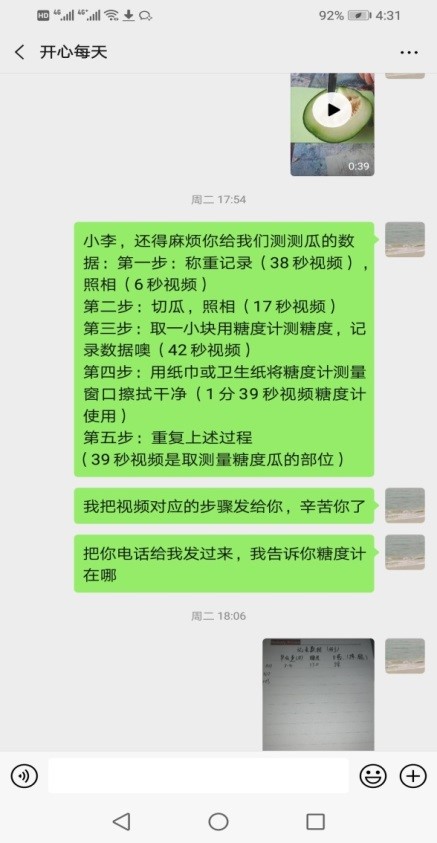 疫情的随之而来,光靠等待就会影响菜用玉米及厚皮甜瓜的收获品质,数据测量也成为泡影,海南气候多变,雨水也渐多起来,迟迟不收也会导致菜用玉米杆上发芽的风险。为此,基地负责人姚慧积极与园艺系科研老师部署紧急备用方案,采用相关老师制定收获细则,利用网络发给基地工作人员,尽量采用通俗易懂的简练语言,把方案做细、做实,少用专业词语,深入浅出,图片、动画加文字的方式,让工作人员看起来更直观,结合团队内成员的专业背景和工作经验,按照作物分为2个小组,每个小组成员负责本组内作物收获方案的制订。