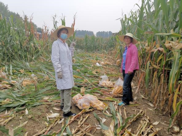 今年采收的菜用玉米主要以单倍体为主,7月授粉以来,团队成员对长势、空杆率、倒伏、致病性等指标进行观察记录,淘汰综合农艺性状较好、生长健壮的单株,兼具扩繁与匹配相结合。采收当天,团队成员于田间观察制定方案,对每个单株之前的编号详细观察,选、筛、留相结合,同时分组、分批进行采收,保证效率及质量。通过今年的种植观察,北京种植的西甜瓜在授粉后40-45天采收,采收后测可溶性内含物,最后根据各时期的特性选出14个品种,10月底11月初海南再次筛选。