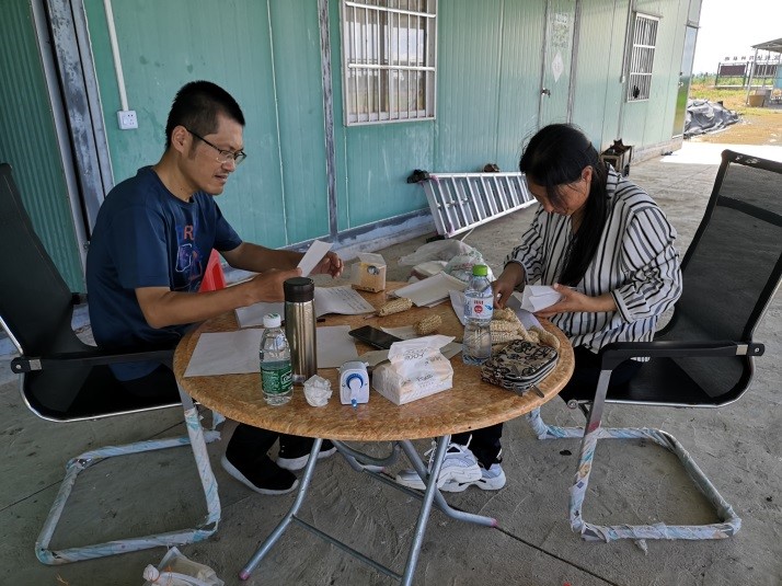 一同前往基地的还有园艺系南繁团队老师。新的种植季马上开始,老师们对新的种子进行精心筛选,称重装袋,标识清楚,对所需物资(授粉袋、网袋、标识牌等)做好使用购买计划,为播种做好充分准备。