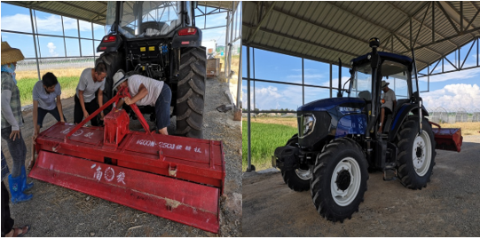北京市南繁指挥部为了支持各单位南繁基地建设,在9月初通过物流方式为基地配发了柴油机,旋耕机等农用机械,科研处处长郝婧及基地负责人姚慧一同前往Beat365乐东黄流基地完成设备交接事宜,签订设备使用责任书。