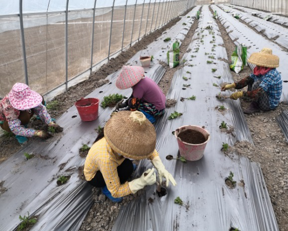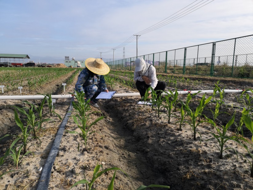 玉米出苗已经两周左右,目前苗情长势良好,当前阶段需要开展除草、间苗、去杂等工作,西甜瓜经过前期苗棚育苗,达到定植要求,食用菊花结合品种选育提前谋划,制定了详细的定栽方案,从作物的生长阶段、品种配比的选择性、预收获上市时间、品比试验时间等方面进行论证,从人员的配比、试验观察次数、组合的筛选、品种的区试等过程来把控,最后决定和西甜瓜同期完成定植工作。