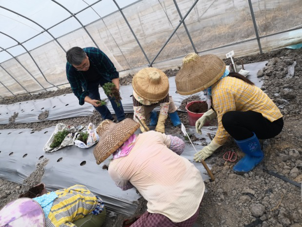 12月上旬海南黄流基地气温较低,早晚温差比较大,天亮的也较晚,太阳出来也在7:30前后。团队成员在科研处处长郝婧,园艺系主任李志强带领下,克服困难,天蒙蒙亮就赶往基地,搬运肥料、苗盘,给工人详细讲解定植注意事项,详细记录定值过程。