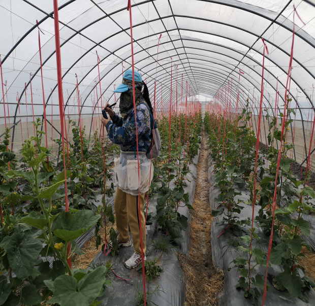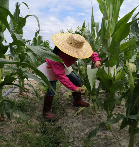2021新年过后,基地负责人姚慧及园艺系教师张海娇、韩振芹一同前往黄流基地,安排完成玉米及西甜瓜授粉工作,到达基地后,大家详细了解作物长势情况,通过玉米实际抽雄情况,对授粉工作进行时间排序,同时完成西甜瓜及菊花的长势情况数据调查。