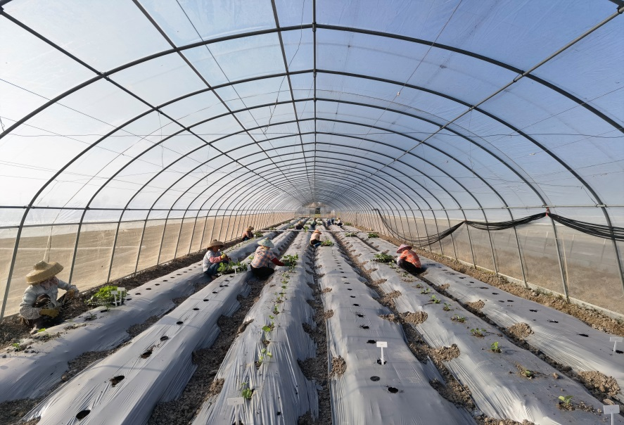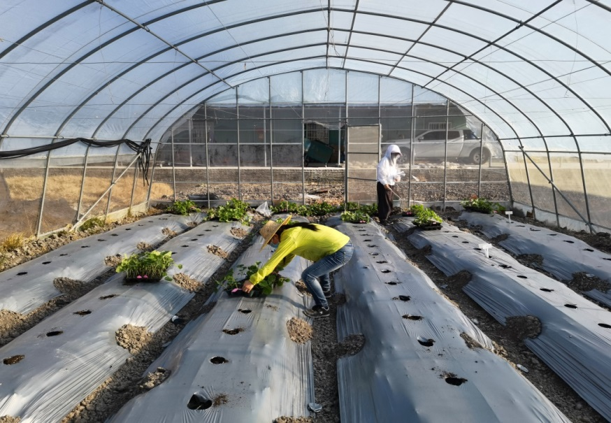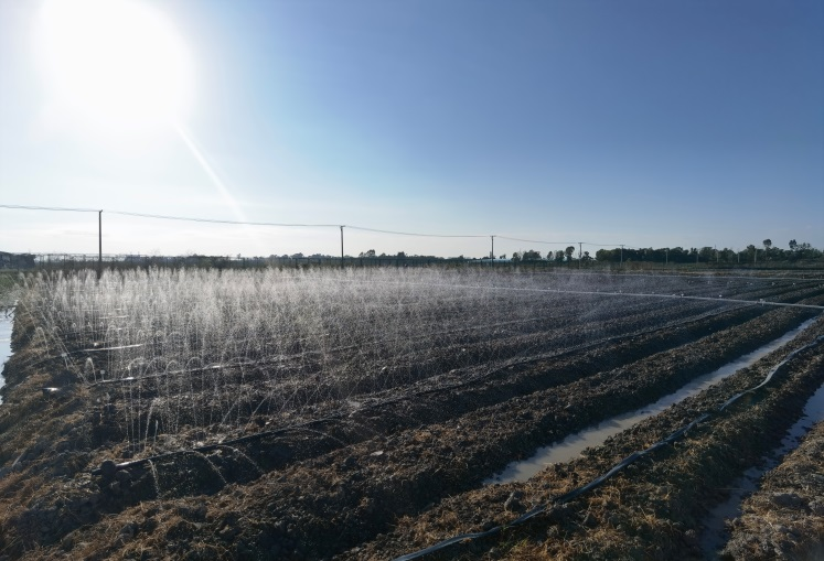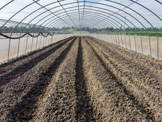 旋耕后,铺洒底肥、起垄、铺设喷管喷带地膜、安装棚膜、完成浇灌管道测试等前期准备工作。