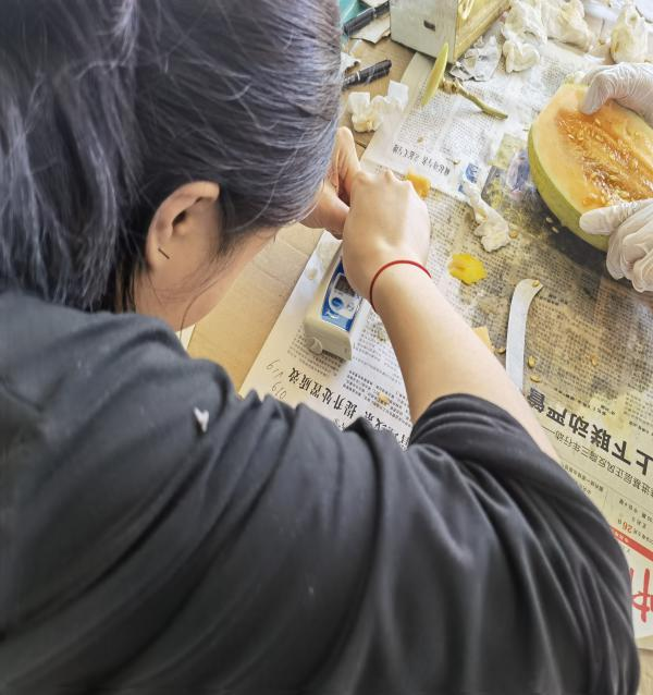 到达基地现场后,姚慧同志按要求进行西甜瓜采收工作,对品种做好标记标识,根据生长势以及病虫害的后期观察再次淘汰25个品种,对保留143个品种进行了可溶性内含物(糖度)的测定,称重等数据采集,最终挑选出12个品种,进行再次种植筛查。