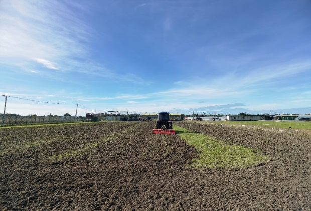 基地负责人到达现场后,对基地周边围栏、线路、排水渠等进行了全面安全排查,安装多台排水设备,对低洼位置进行排水除险,由于水多、温度高,杂草涨势旺盛,给旋耕土地带来较大麻烦,首先需要扎草机把较高较壮的杂草打碎,再进行多次旋耕。