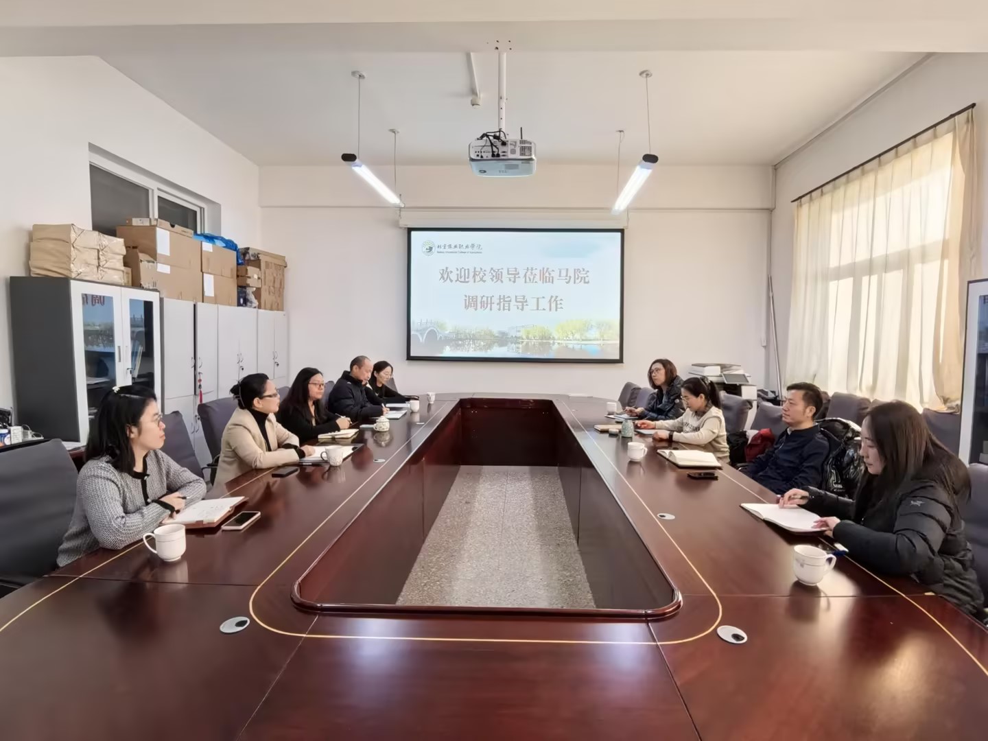 张晓辉对马院成立以来的工作成效给予充分肯定并提出三点要求。一是要加强顶层设计。根据马克思主义学院的建设标准和要求,对标学校发展的长远目标来确立马院下一步发展计划,实现马院建设和学校发展同频共振。二是深化教学改革。通过思政课程和课程思政联动,挖掘以农为主的课程思政元素,建设凸显农职特色的思政课程。三是要建强师资队伍。在提升教师专业素养与教学能力基础上,培养科研、实践教师队伍。他强调,马院要以此次调研为契机,进一步细化“十五五”发展规划,加强与二级学院、职能部门协同联动,推动“大思政课”建设与学校人才培养、学科发展深度融合。
