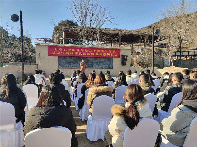 12月3日,学校马克思主义学院组织师生在门头沟区谷山村农耕文化园举行“大思政课”实践教学基地授牌仪式。马克思主义学院院长万俊丽和园区负责人梁国春出席此次活动。