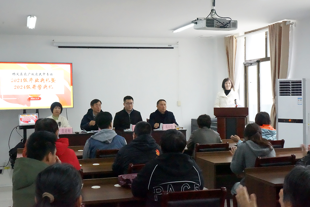 梁宝欣向顺义区社区教育中心和顺义农广校在助力龙湾屯镇农民学历教育与素质提升方面所做出的贡献表示感谢。对即将毕业的学员表示了祝贺,并对新一期学员寄予了厚望,鼓励他们在新的学习旅程中不断追求进步,为乡村振兴贡献力量。