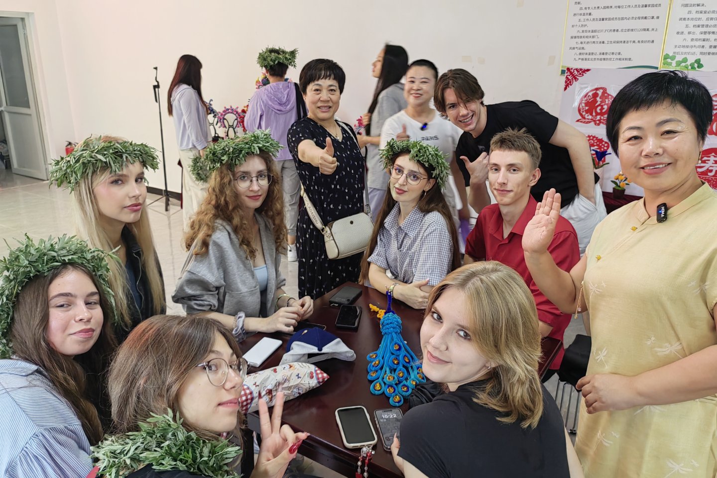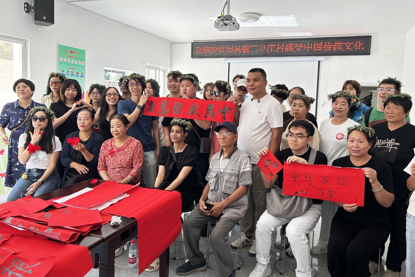 在农民中专班的实践课堂上,留学生们还亲身体验了中国传统技艺,学习传统书法、剪纸、艾草编织等技能。来自摩洛哥的女孩兴奋地展示自己的剪纸作品,介绍红纸边缘的锯齿纹路象征着文化纽带。留学生们对这些作品爱不释手,纷纷动手尝试,希望把这份独特的中国记忆带回家。