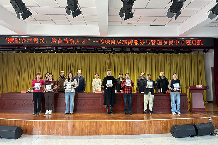 开班典礼上,学院及区教委领导向学员代表发放教材。新学员代表作典型发言,表达了强烈的学习愿望与坚定的学习决心。职业学院副院长刘明海介绍了延庆区农广校的教育资源优势与办学特色,表示将通过针对性教学帮助学员夯实文艺技能,为乡村文化建设储备人才。