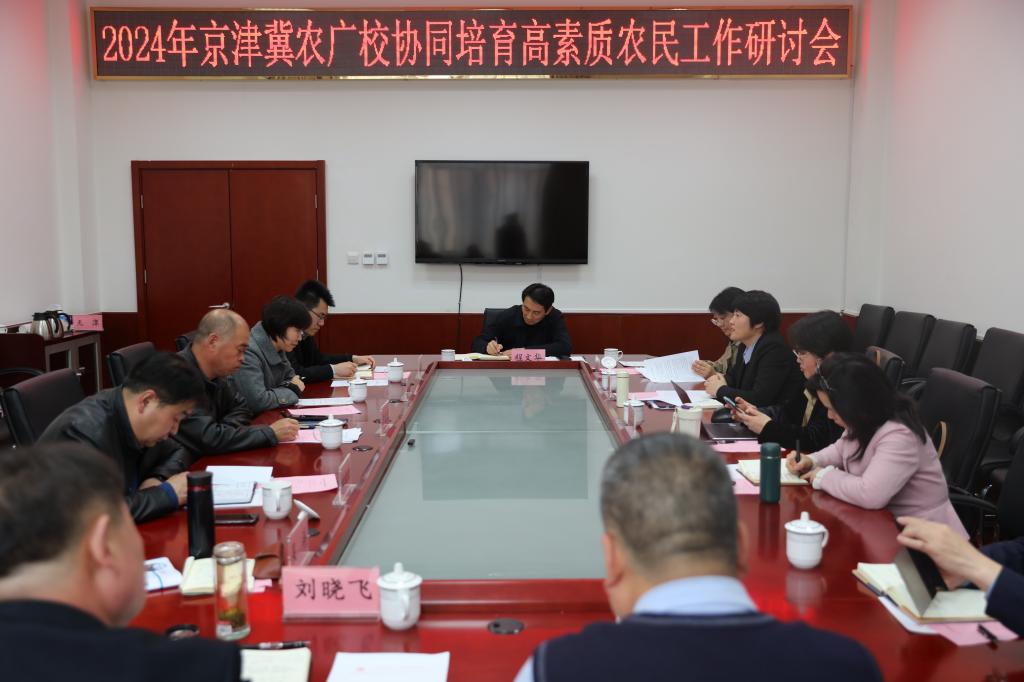 为深入贯彻2024年中央一号文件精神,推进京津冀农广校协同发展,北京市农广校协同天津、河北和北京市各区农广校于4月2日共同召开京津冀农广校协同培育高素质农民工作研讨会。北Beat365唯一官方网站副院长程文华、北京市农广校校长张新华、天津市农广校校长曹建新、河北省农广校校长马金翠及北京市各区农广校主要领导参加会议。会议由北京市农广校副校长李桂元主持。