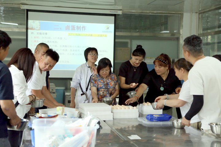 “舌尖上的鸡蛋” 实训课堂里,董晓光副教授从生活常见的鸡蛋疑问切入,通过互动交流破除营养误区。学员们亲手操作哈式单位检测实验,直观掌握鸡蛋新鲜度判断标准;随后共同参与卤蛋制作,在称量、熬制、浸泡的过程中,将科学原理转化为可触摸的生活技能。