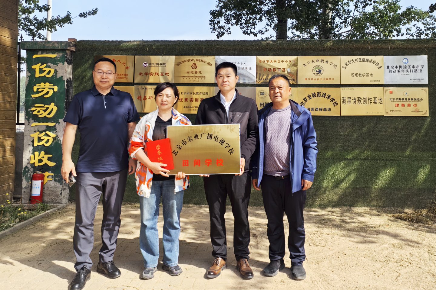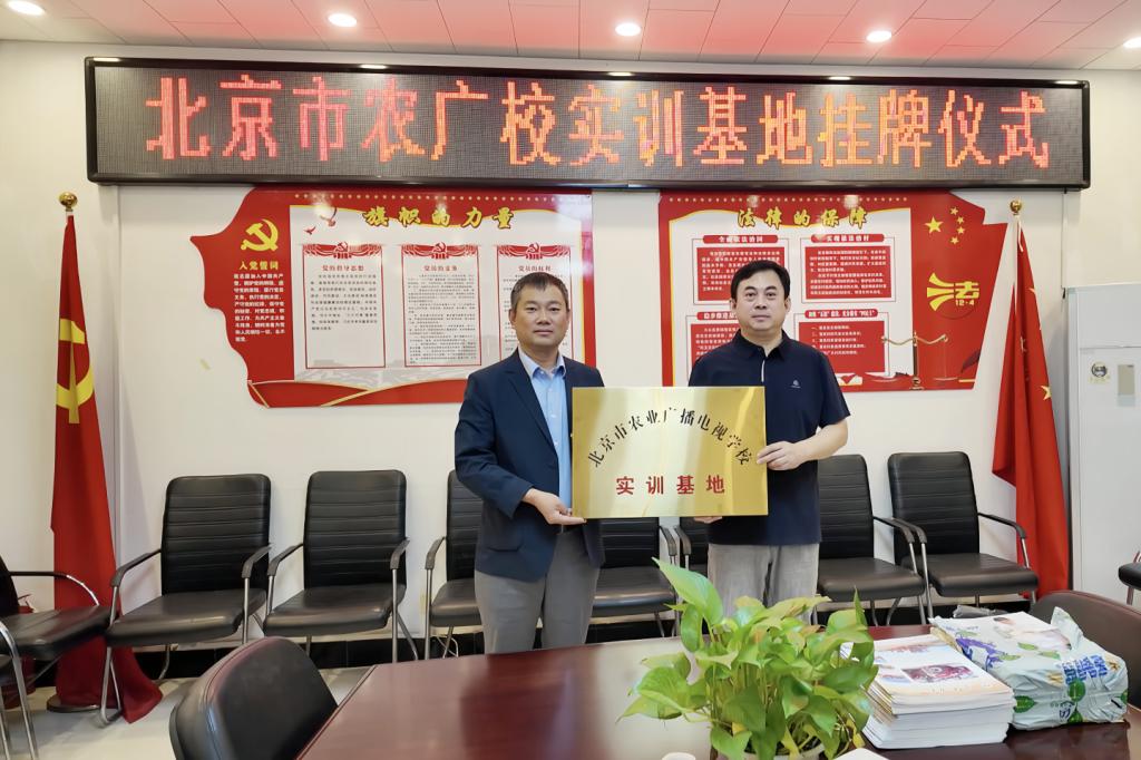大兴区农广校向实训基地赠送了1000余册精心挑选的农民读物。卜朝辉校长和胡长余主任分别代表大兴区农广校为实训基地和田间学校正式挂牌,向各负责人颁发了荣誉证书。