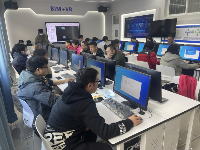 本次BIM技术培训依托学院2022年财政专项“水利工程专业群BIM实训室建设项目”,开展了BIMMAKE、BIM5D、三维场布、安装算量、进度计划等多项内容的培训,共有来自企业的25名技术人员和25名专业师生参加培训,培训时间从3月18日开始,3月27日结束。