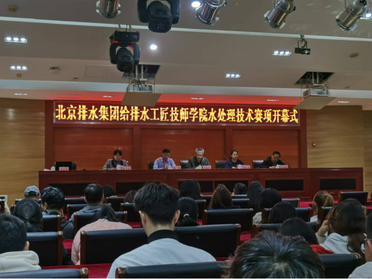 10月14日下午,北京排水集团给排水工匠技师学院水处理技术赛项在会议中心多功能厅举办开幕式,水利与土木工程学院、教务处、设备赞助商领导和北京排水集团培训中心老师出席,水利与土木工程学院科室负责人、土木工程系专业教师及给排水工程技术专业所有在校生参加开幕式。
