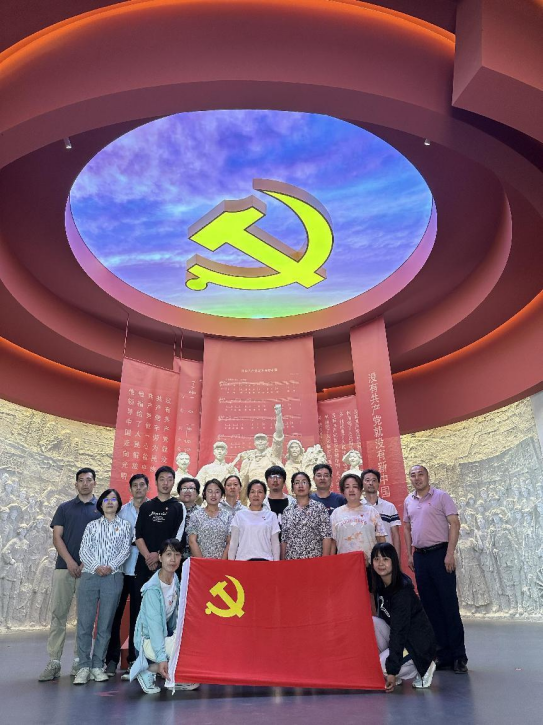在党旗广场,全体党员庄严宣誓,重温入党誓词。齐唱了《没有共产党就没有新中国》等多首革命歌曲。随后,大家来到纪念馆参观了“人民的心声历史的旋律”主题展。展览的每一个篇章,大家都驻足观看,认真听取讲解。