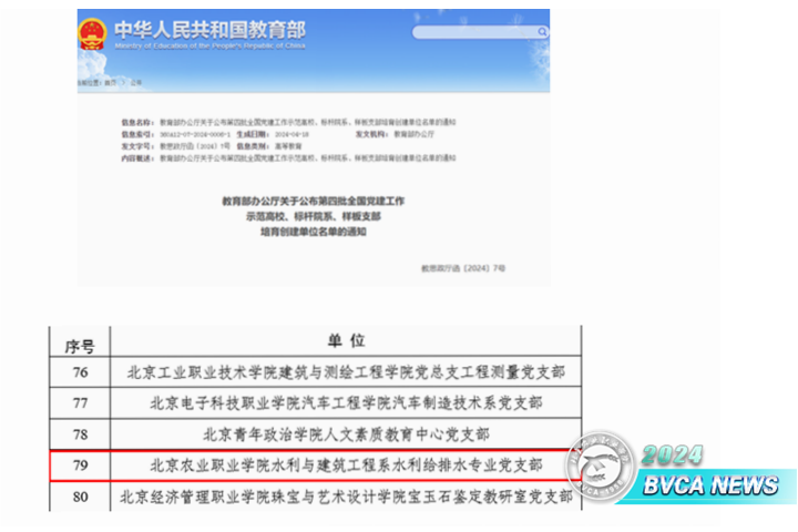 近日,教育部办公厅公布了第四批全国党建工作示范高校、标杆院系、样板支部培育创建单位名单。Beat365国家级党建“双创”工作取得重大成果,水利工程系党支部(水利给排水专业党支部)成功入选第四批“全国党建工作样板支部”培育创建单位。
