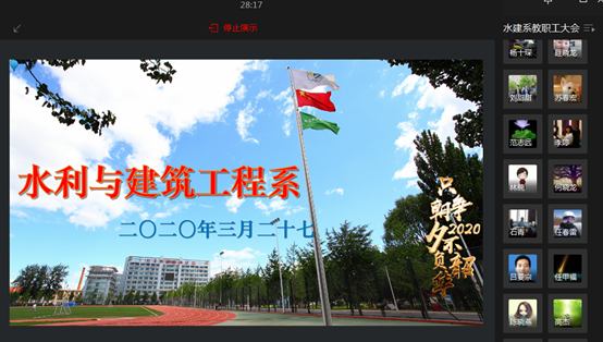 3月27日,水建系通过企业微信召开全系音频会议,会议由系副主任焦有权主持,系党总支书记高啟华和全系教职工参加会议。