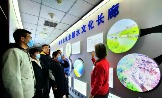 在教师的讲解下,水建系学生参观了文化长廊,进一步了解国家乡村振兴战略、都市型现代农业、生态文明建设、美丽乡村建设等国家战略,对现代水利需求加深了认识,现场传承水利精神,感受水利文化。