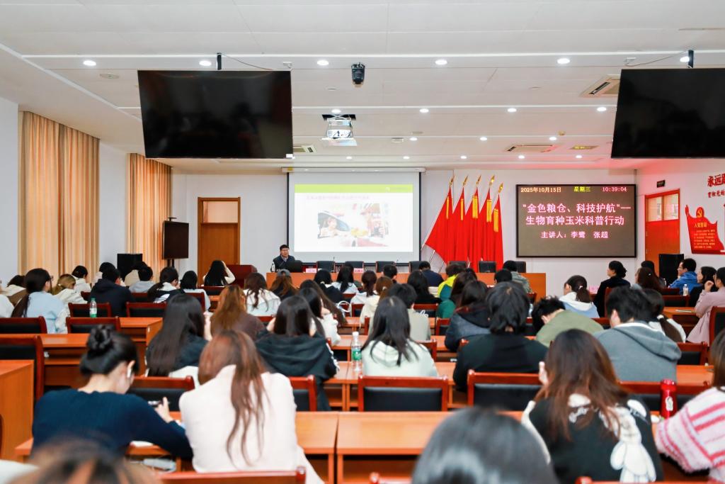 10月15日上午,食品与生物工程学院生物技术系党支部联合农业农村部科技发展中心,在图书馆三层学术报告厅成功举办“金色粮仓,科技护航”支部共建暨生物育种科普活动。农业农村部科技发展中心李宁处长一行,学院党总支书记王艳四、副院长杨新建、副书记关伟,以及支部全体教师与百余名学生共同参与。