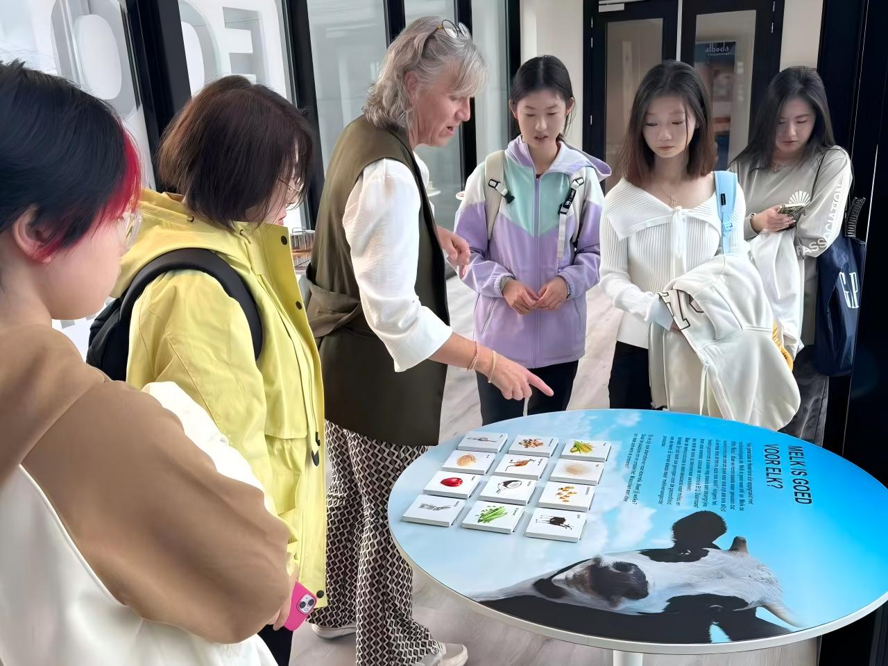 在食品创新研究中心,代表团参观了原料储存与初加工、食品感官评价、食品创新、微生物、理化检测、分子检测等多个实验室,以及科普空间、烘焙工厂等。酸奶工作坊中,同学们不仅系统研习了酸奶的制作工艺,更通过感官评价、显微观察(益生菌)等实践活动零距离探究酸奶奥秘。活动最后,通过对比中荷两国酸奶的经典搭配,大家进一步探讨了酸奶在健康膳食与饮食文化中的多元价值。