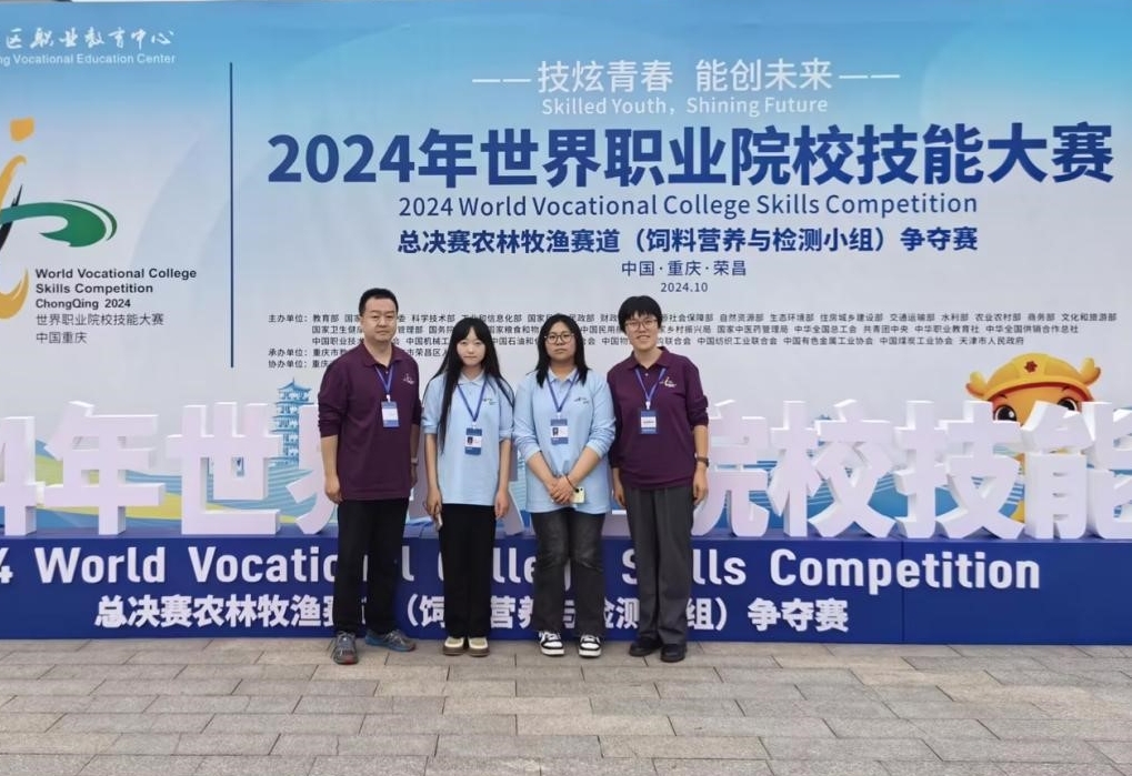 10月24-29日期间,食品安全系两支参赛队分别参加2024年世界职业院校技能大赛中的“食品安全与质量检测”和“饲料营养与检测”赛项。其中食品安全与质量检测赛项的张馨月、赵重阳、陈鸿滢三名参赛选手经过激励角逐,荣获三等奖。