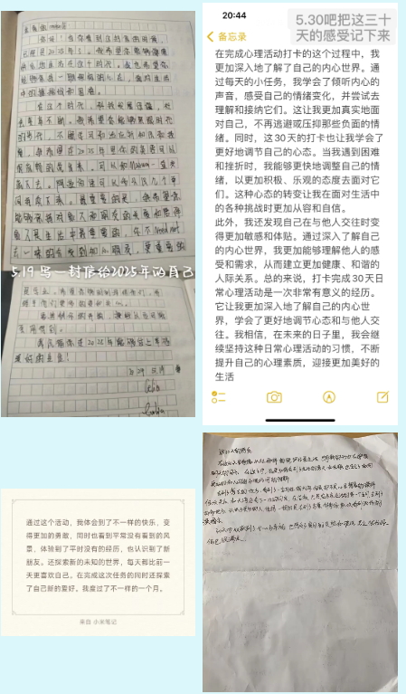 为帮助同学们从平凡的生活中找回满足感和幸福感,提醒同学们在日复一日的学习和忙碌中重视心理健康,照顾好自己的内心世界,心理素质发展与指导中心发起了“关爱自己30天”打卡活动。让我们一起去看看同学们的收获与分享吧!