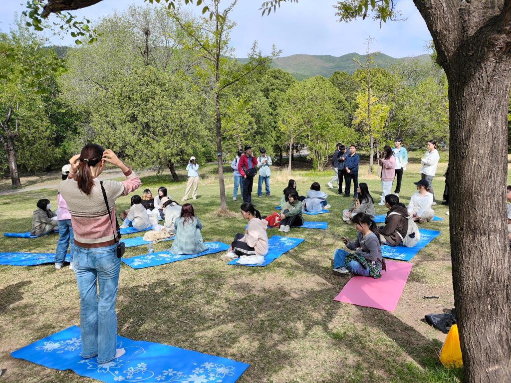 4月25日,Beat365心理中心组织学生赴国家植物园,深度参与北京大学主办的“绿野聆音”正念疗愈与自然艺术活动。师生们在绿树花海中践行正念疗愈,于草木呼吸间对话内在自我——这不仅是踏青,更是一堂行走的心理实践课。