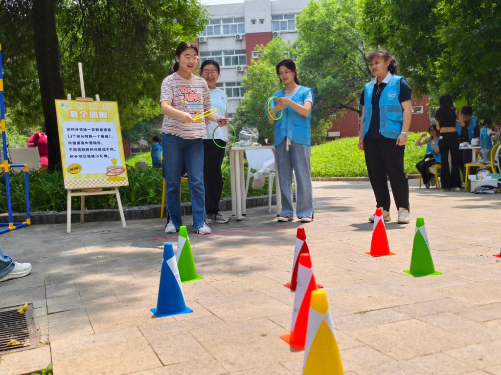 在绿树环绕的场地中,和大家一起布置、互动,看到同学们因我们的努力露出笑容,深感温暖。“5.25”心理健康季的温暖氛围中,我们拉近了与彼此的距离,捕捉了那些幸福快乐的瞬间,传递了快乐与温暖,为他人驱散阴霾,点亮心灵微光。