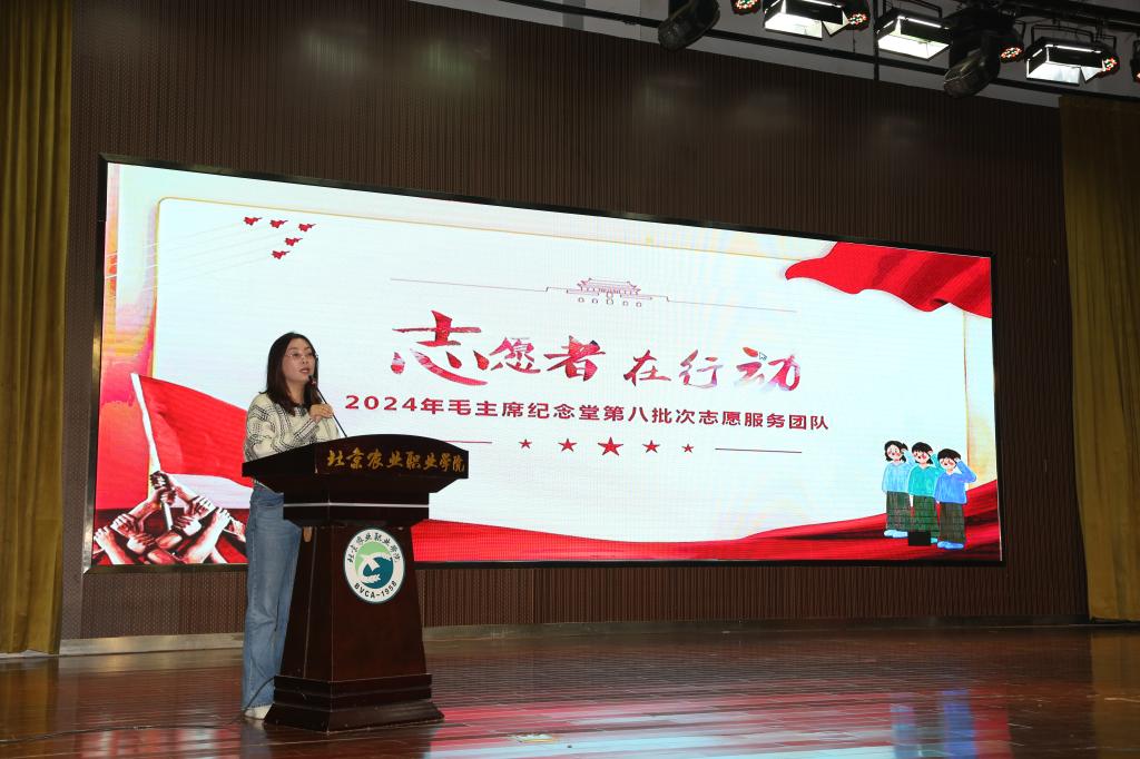 为弘扬毛主席的伟大思想和崇高精神,带领农职师生共同上好毛主席纪念堂志愿服务这堂大思政课,坚定学生理想信念,传承学校红色基因,10月14日下午,学校在长阳校区学术报告厅举办“红心向党 青心报国”毛主席纪念堂志愿者宣讲活动,四校区学生代表500余人参加,团委副书记栗广社主持宣讲活动。