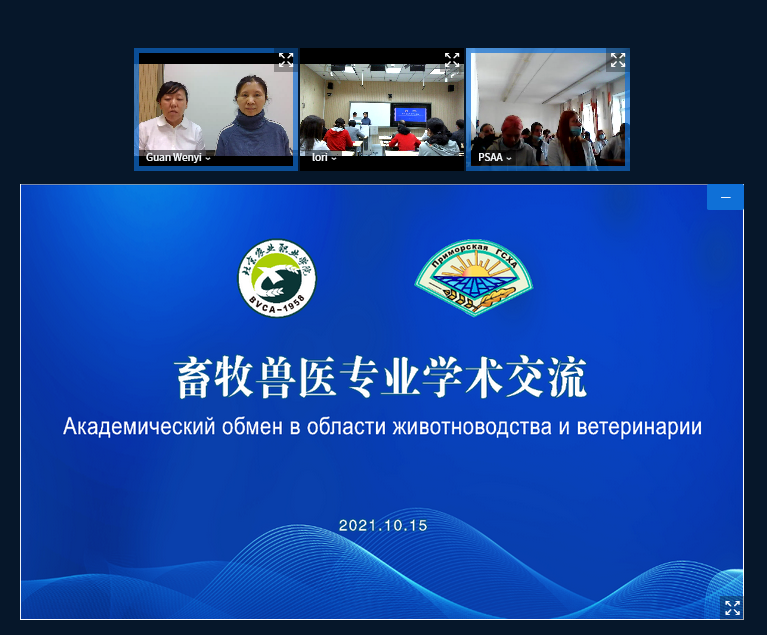 在新冠疫情大流行背景下,为继续加强国际合作,开拓师生视野,10月15日,畜牧兽医系与俄罗斯滨海农大以网络视频方式开展了专业学术讲座。此次活动由牧医系副主任周珍辉主持,参会人员有国际交流处老师、牧医系师生40人及滨海农大学生50人。