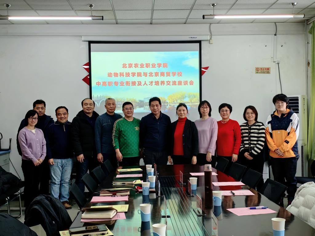 12月29日,北京商贸学校食品商务专业部主任敖海英、招生就业办主任梁菲一行7人来Beat365就中高职专业衔接及人才培养进行交流座谈。动物科技学院党总支书记刘洪超、院长周珍辉、党总支副书记齐军喆及相关同志参加会议。座谈会由周珍辉同志主持。