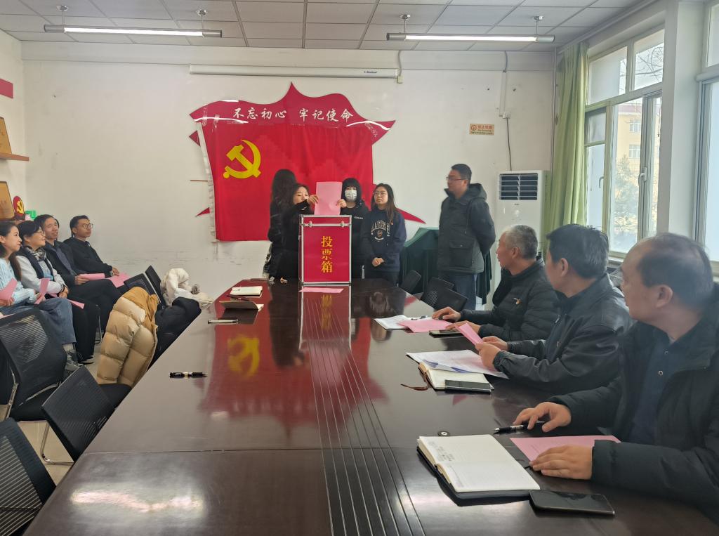 会议在雄壮的国歌声中开始,首先由刘洪超同志代表上一届党总支向大会作工作报告,大会审议一致通过工作报告。随后,按照大会议程,审议通过了选举办法、党总支委员会委员候选人名单、监票人和计票人名单,全体党员严格按照基层组织换届选举程序,认真规范地进行了投票,最终选举出5位同志为新一届党总支委员。