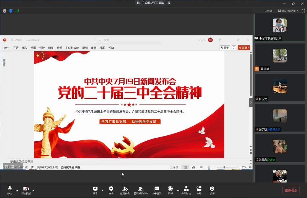 近日,动物科技学院党总支组织师生通过网络、电视、广播等多种方式,认真学习党的二十届三中全会精神。各党支部分别召开线上党员大会,师生结合自身工作纷纷说心得、谈体会。