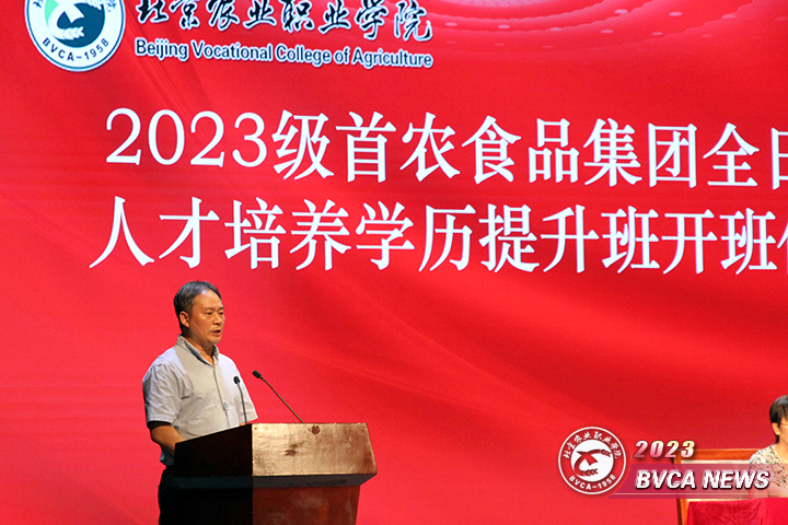 2023年,作为中国都市农业职教集团双理事长单位,学院与首农食品集团有限公司进一步深入推进校企合作,就全日制高等职业教育人才培养开展合作,促进首农食品集团有限公司优秀职工的学历提升。根据首农食品集团有限公司实际需求,学院开设了“现代农业经济管理”“农产品流通与管理”“休闲农业经营与管理”“设施农业与装备”四个涉农专业,培养首农食品集团急需人才。经过双方共同努力完成4个专业招生工作,首届100余名学生顺利入学开启三年的大学学习。“首农班”开办是学院深入落实《关于深化现代职业教育体系建设改革的意见》《国家职业教育改革实施方案》、北京市《关于推动职业教育高质量发展的实施方案》的重要举措,必将进一步促进教育教学改革,推动学院产教融合深化,提升人才培养培养质量和服务行业、企业的水平。