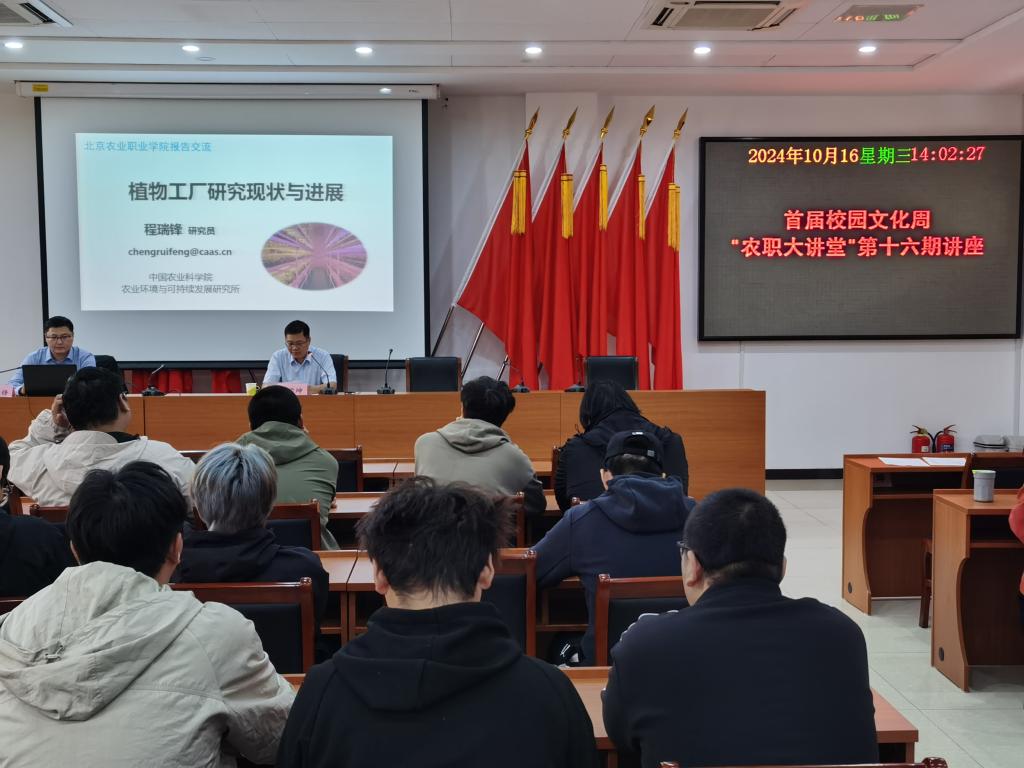 2024年10月16日下午,由科研处主办、智慧农业工程学院承办的“农职大讲堂”第十六期讲座在学校图书馆学术报告厅开讲。智慧农业工程学院院长杨学坤主持,学校师生代表共60余人现场聆听讲座。