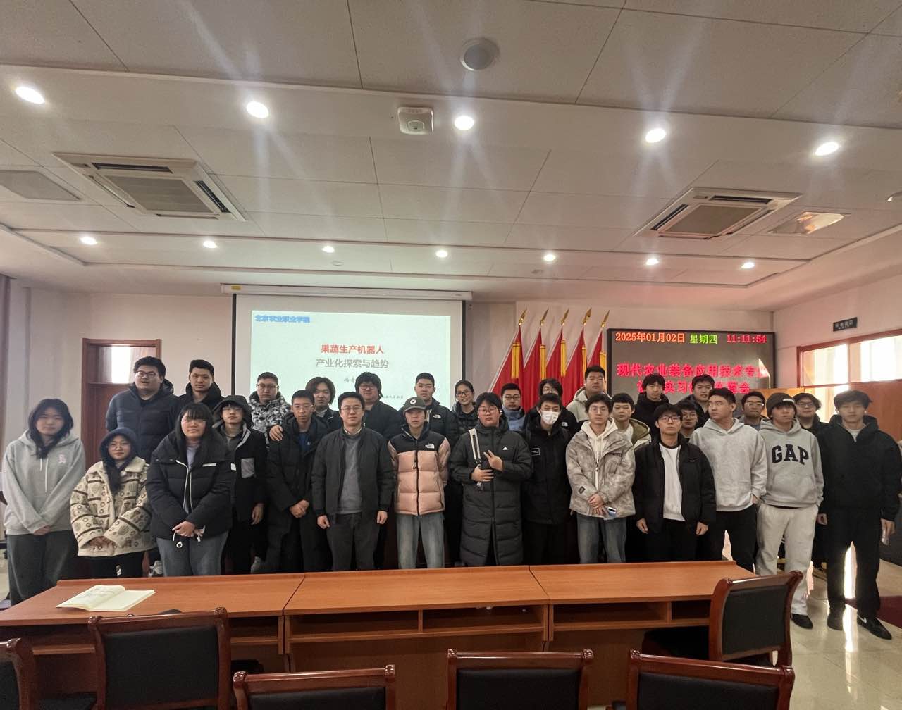 认知实习活动中,指导教师李小明、陈科老师先后带领学生参观了北京中科原动力科技有限公司、小汤山国家精准农业示范基地、校内智能温室、长阳农场等加速智慧农业场景应用落地的企事业单位。通过现场专业讲解,结合学术互动交流,极大地激发了学生的专业兴趣和对未来农业的憧憬。活动特别邀请了北京农林科学院农业机器人实验室主任冯青春博士,以“果蔬生产机器人产业化探索与趋势”为题,详细介绍国内外先进农业机器人应用情况,以及未来农业机器人的发展方向。