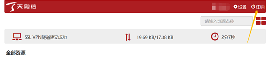 当您使用完VPN后,点击登录成功界面右上角的注销按钮即可退出VPN。您也可以在电脑端的系统托盘(屏幕右下角)找到VPN客户端后右键点击后退出。