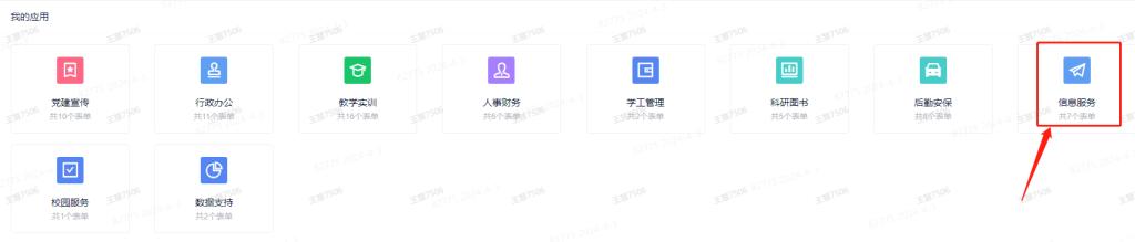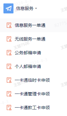 信息中心通过企业微信中的“表单流程”,面向师生提供信息服务,服务内容和操作如下: