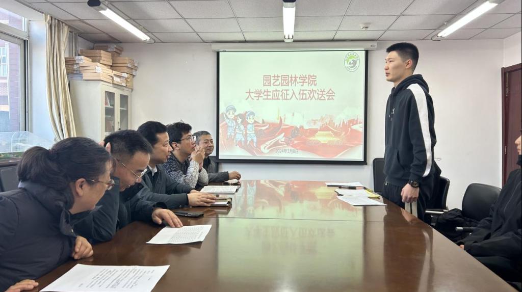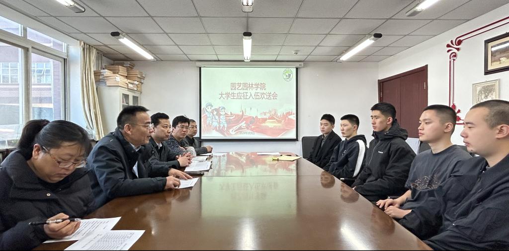 202438上午园艺园林学院在园艺楼302会议室举行2024年春季送兵会,欢送园艺园林学院6名学子光荣入伍院长李志强、副院长吴晓云、办公室主任武晋、班主任和辅导员代表参加会议,会议由党总支书记赵永军主持。
