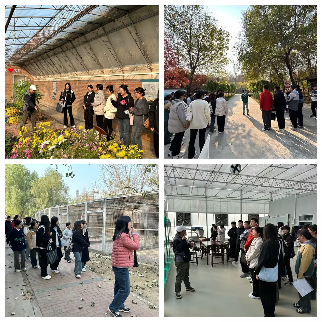 上午同学们先后到智能温室、大学生创业多肉工坊、食用菊花展、兰花文化温室、彩林园、畜牧场、农业科普展厅等实训基地进行实地调研学习。
